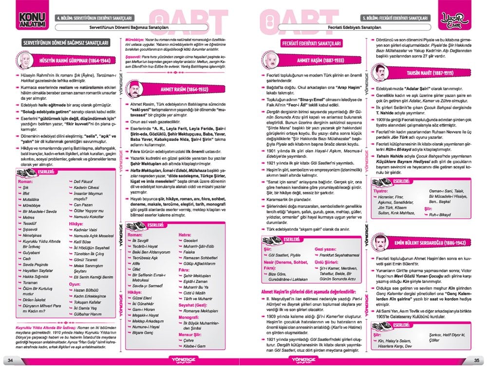 Günümüze kadar ÖSYM'nin sorduğu banko ve sorması muhtemel 300 sanatçının en önemli özeliklerini hızlı bir şekilde öğrenilebilmesi adına uzun, kapsamlı ve akılda kalıcı şekilde yazdık. AYT Yazar Eser kitabımızdan tamamen farklıdır, hiçbir sanatçı AYT'deki kısa ve öz anlatımla aynı değildir.